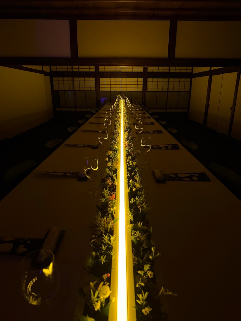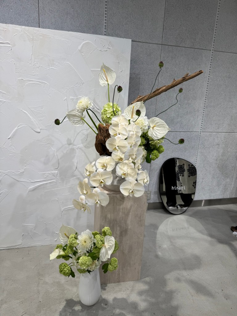 VIPイベントのテーブルディスプレイを装花しました。ライトとの高さ、見え方、バランスを計算してお作りしました。