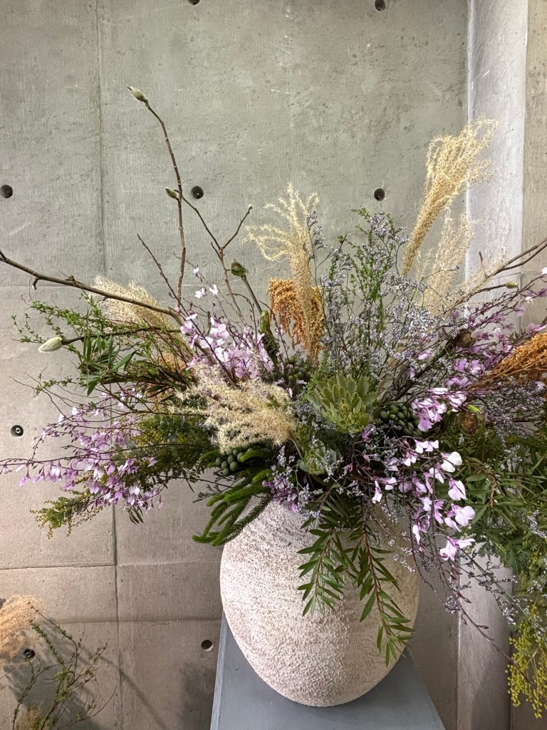 秋冬のコレクションに合わせた小花の種類を多く使用して、ナチュラルだけど複雑で洗練されたデザインをご用意しました。